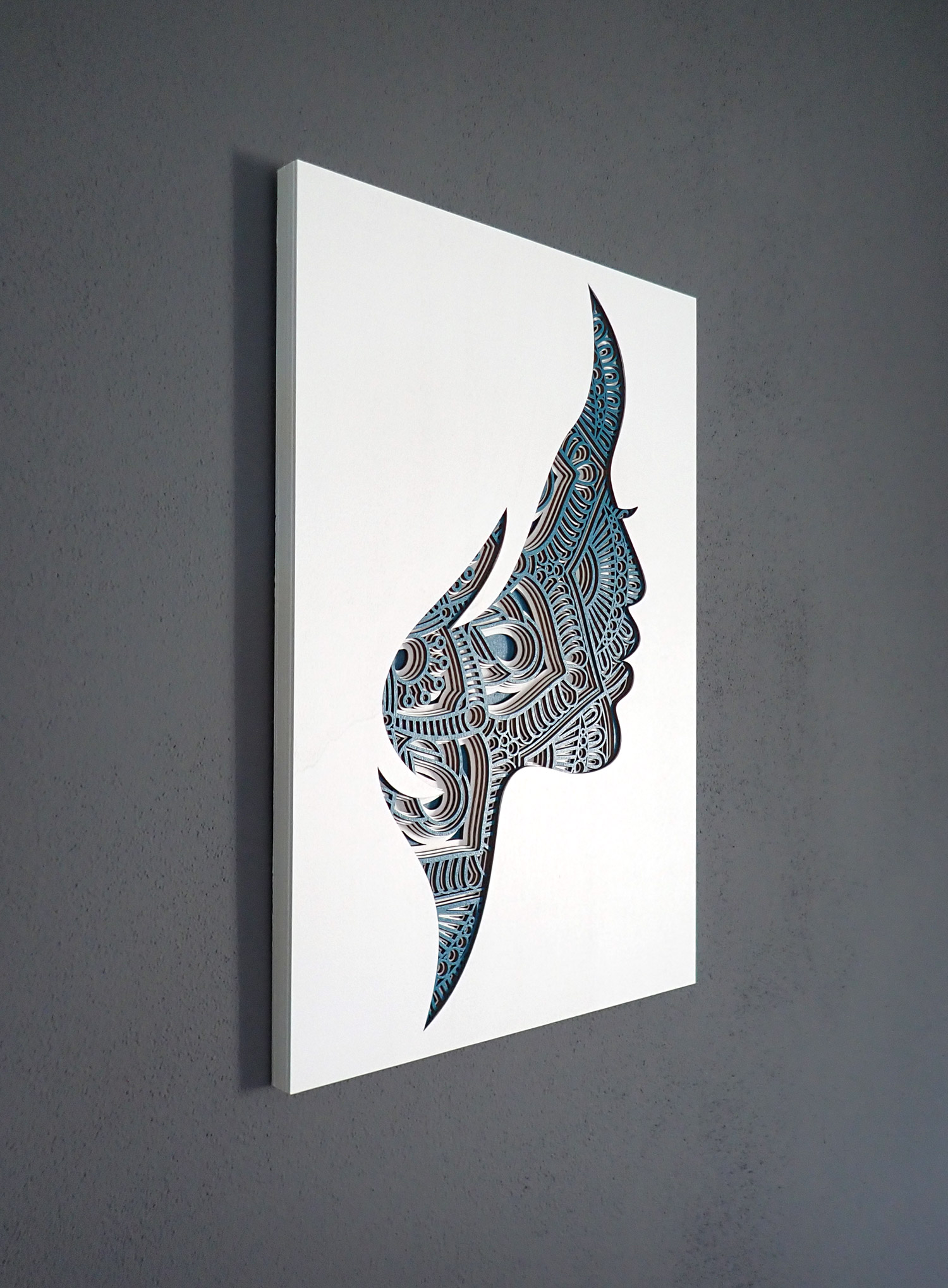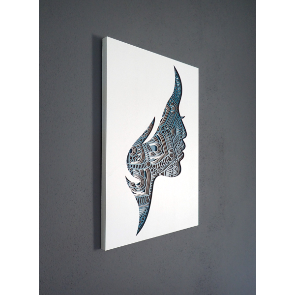 3D drevená mandala, obraz tvár ženy