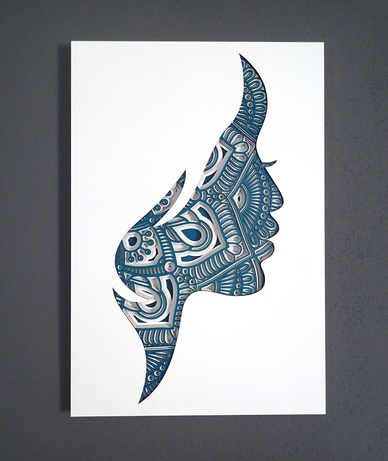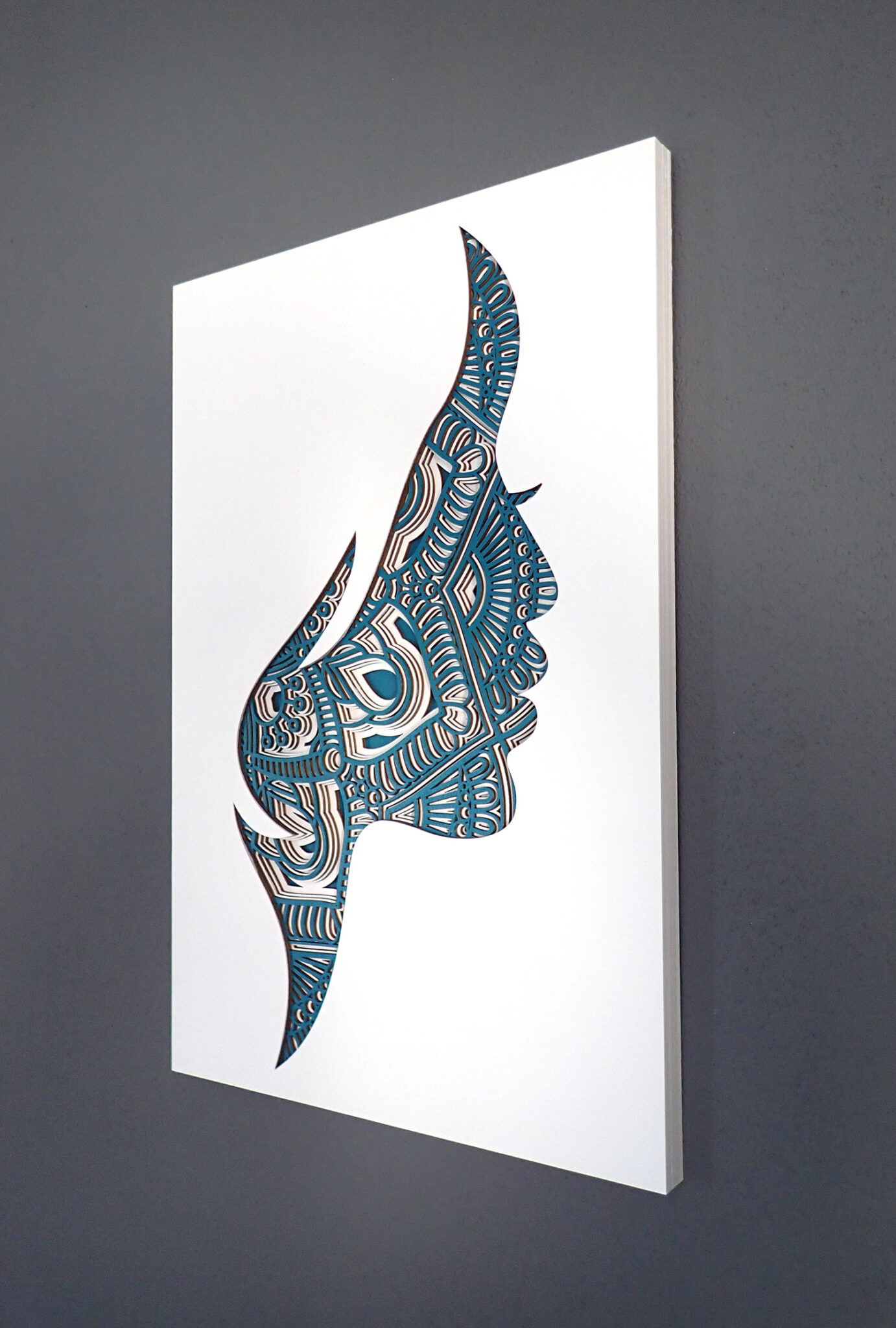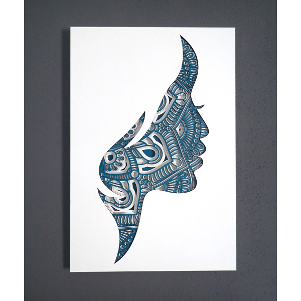 3D drevená mandala tvár ženy je vyrobená zo 6 vrstiev, ktoré sú namaľované ekologickou akrylovou farbou. Mandala je vyrobená z topoľovej preglejky laserom a jednotlivé vrstvy sú zlepené. Farbu obrazu môžeme prispôsobiť podľa požiadaviek. Rozmery obrazu: 33 x 49 cm alebo 46 x 68 cm (ŠxV).
