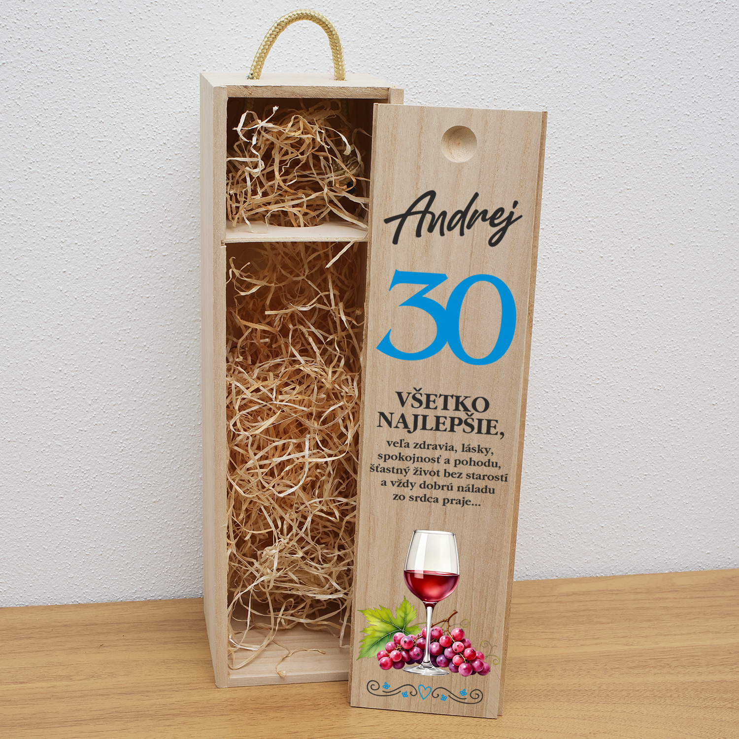 Drevená krabica na fľašu je elegantný a praktický darček, ideálny na oslavu jubilea alebo inej výnimočnej príležitosti. Vyrobená je z kvalitného dreva Paulovnie plstnatej a zdobená precíznym gravírovaním, ktoré je možné prispôsobiť podľa vašich predstáv. Personalizácia menom, dátumom a krátkym venovaním dodáva darčeku jedinečný a osobný charakter. Drevená škatuľa poskytuje nielen štýlové balenie pre fľašu vína, destilátu či iného nápoja, ale zároveň slúži ako trvalá pamiatka, ktorú si obdarovaný môže uchovať ako milú spomienku na svoj významný deň.
