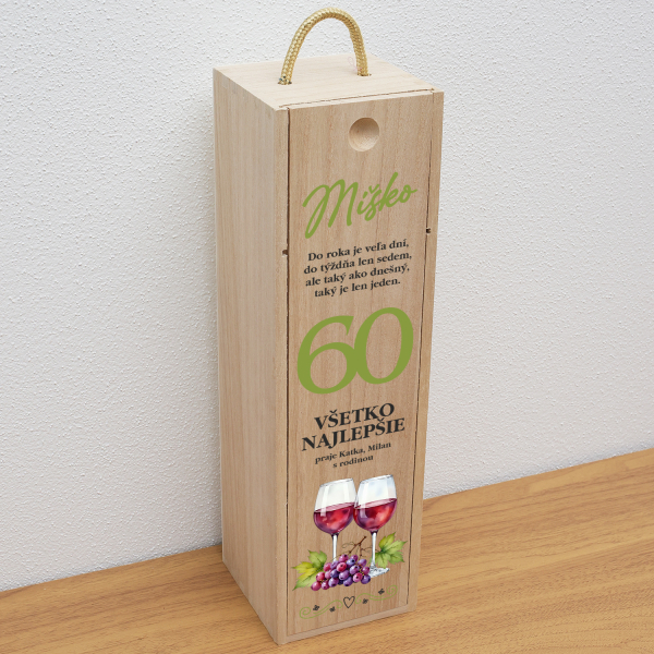 Drevená krabica na fľašu k jubileu
