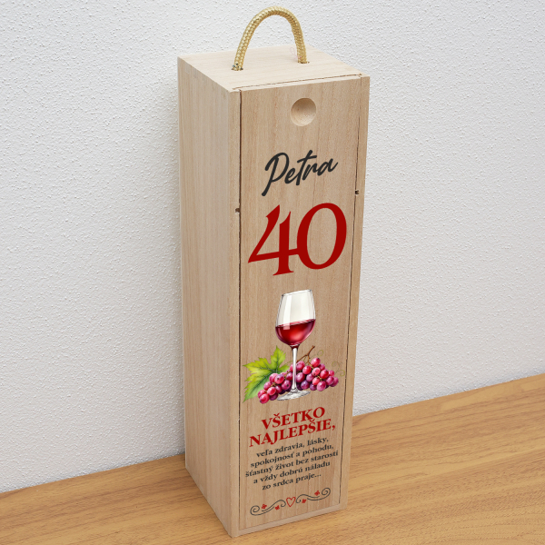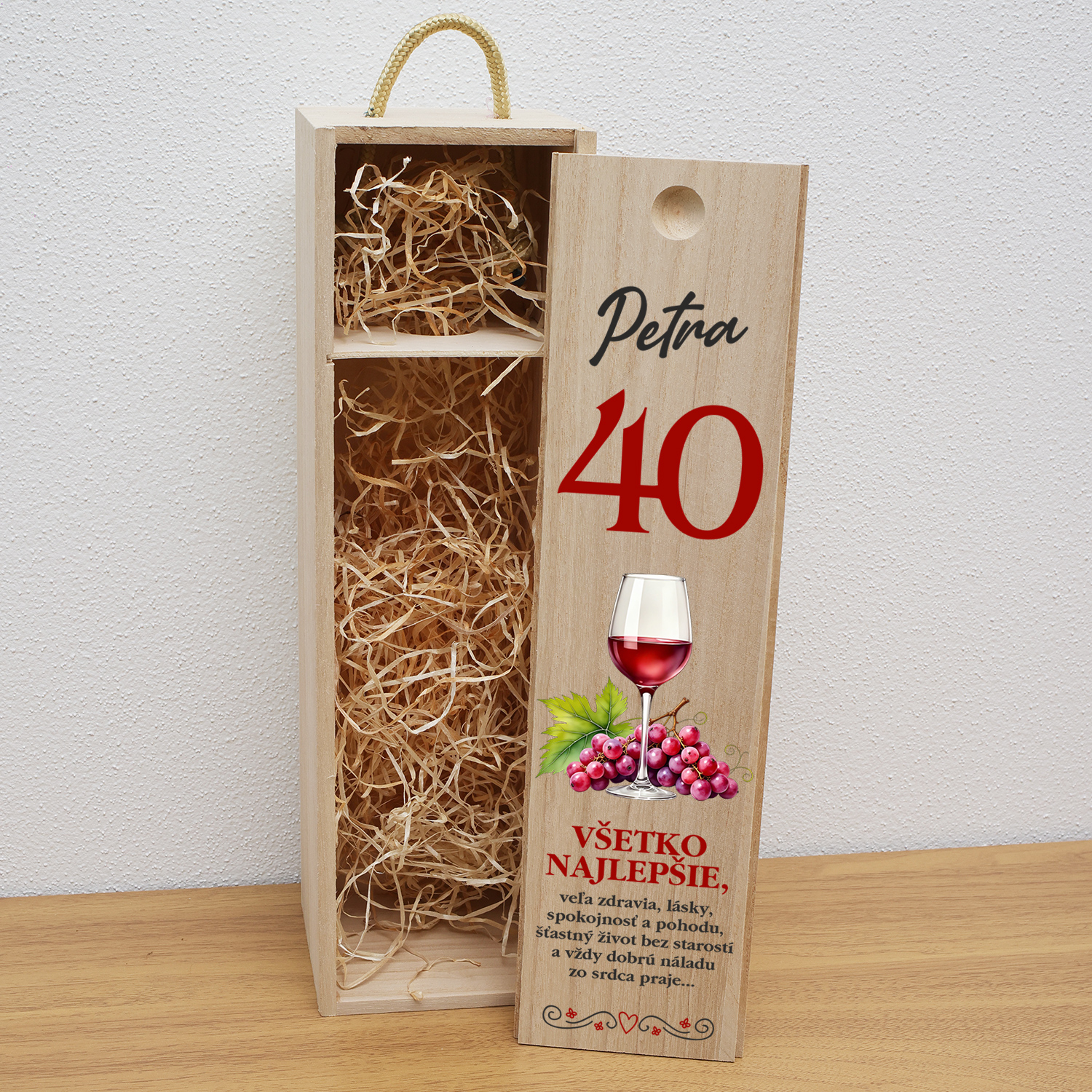 Drevená krabica na fľašu k jubileu, gravírovaná 1