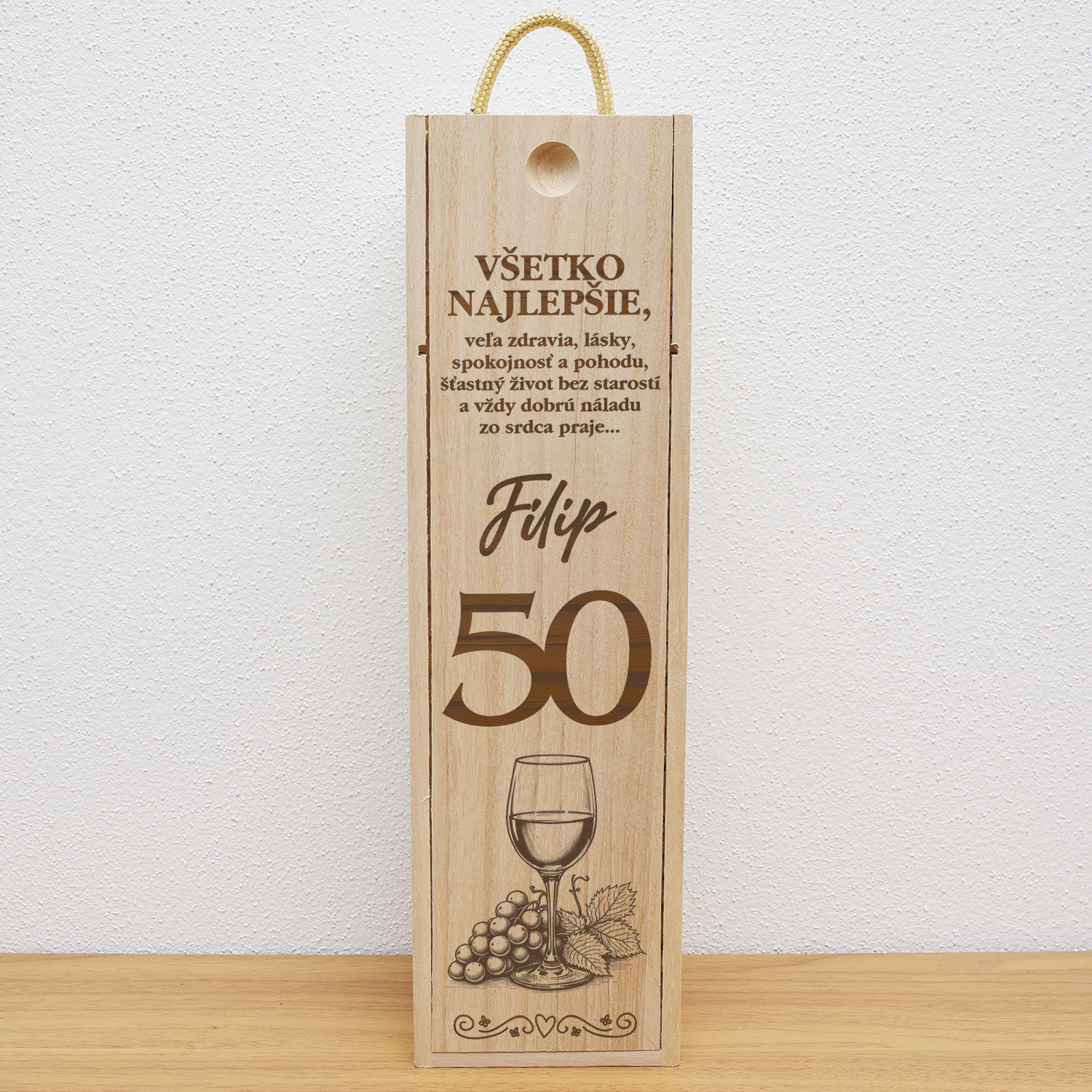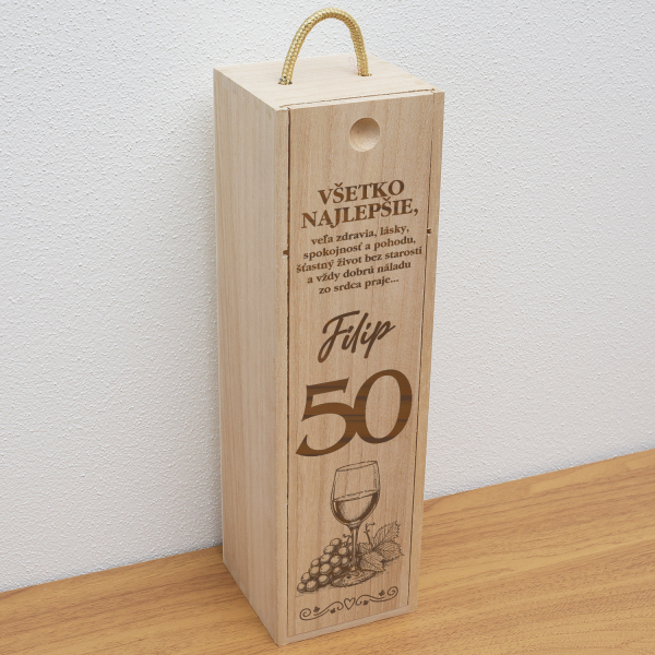 Drevená krabica na fľašu k jubileu, gravírovaná 3