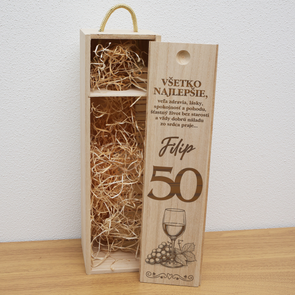 Drevená krabica na fľašu je elegantný a praktický darček, ideálny na oslavu jubilea alebo inej výnimočnej príležitosti.