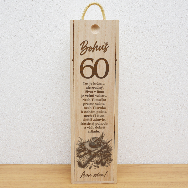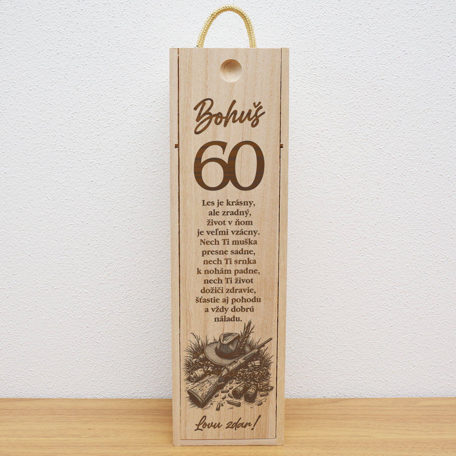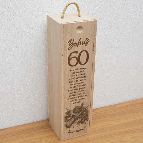 Drevená krabica na fľašu pre poľovníka je elegantný a praktický darček, ideálny na oslavu jubilea alebo inej výnimočnej príležitosti.