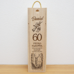 Drevený box na fľašu je elegantný a praktický darček, ideálny na oslavu jubilea alebo inej výnimočnej príležitosti. Vyrobený je z kvalitného dreva Paulovnie plstnatej a zdobený precíznym gravírovaním, ktoré je možné prispôsobiť podľa vašich predstáv. Personalizácia menom, dátumom a krátkym venovaním dodáva darčeku jedinečný a osobný charakter. Krabica poskytuje nielen štýlové balenie pre fľašu vína, destilátu či iného nápoja, ale zároveň slúži ako trvalá pamiatka, ktorú si obdarovaný môže uchovať ako milú spomienku na svoj významný deň.