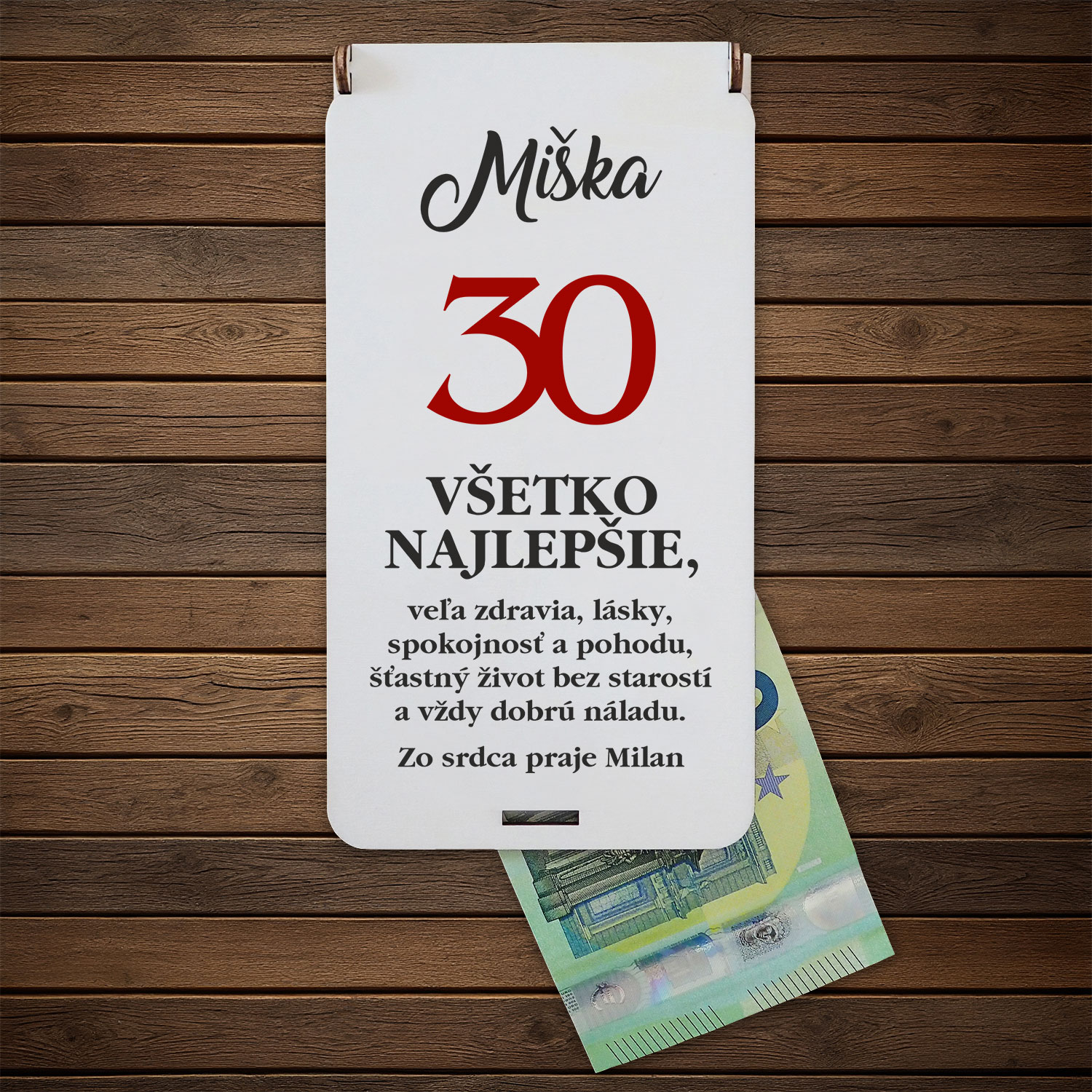 Elegantná drevená krabička na peniaze k jubileu sa stáva jedinečným a osobným darom, ktorý bude mať oslávencovi dlhú spomienkovú hodnotu.