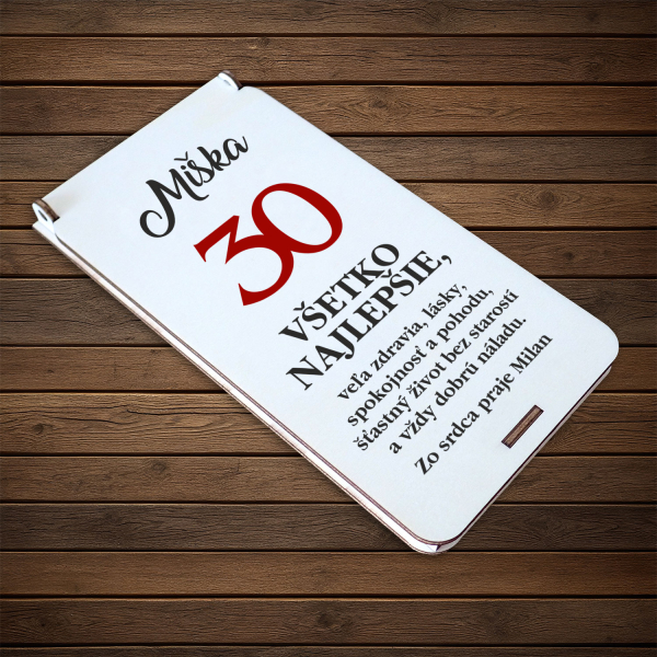 Štýlová drevená krabička je originálny spôsob, ako darovať finančný príspevok k významnému jubileu. Je vyrobená z kvalitnej topoľovej preglejky s hrúbkou 3 mm, je ľahká, no pevná a vďaka otváraciemu prevedeniu aj praktická. Na prednej strane je vytlačené venovanie, meno a vek oslávenca.