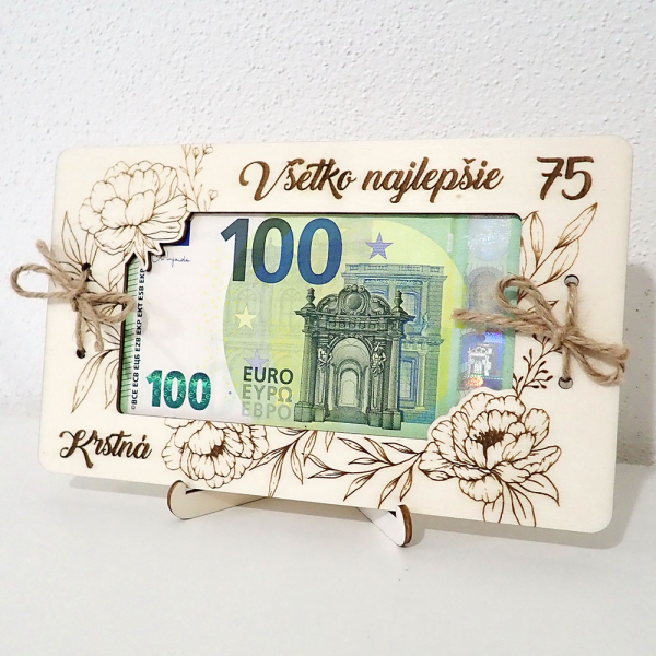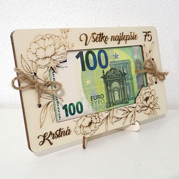 Drevená obálka na peniaze je elegantný a originálny spôsob, ako darovať finančný dar s osobným odkazom. Je vyrobená z kvalitnej drevenej preglejky a skladá sa z dvoch vrstiev. Na vrchnej vrstve je precízne vygravírované meno oslávenca, jubileum a venovanie, zatiaľ čo na spodnej vrstve nájdete krásnu básničku.