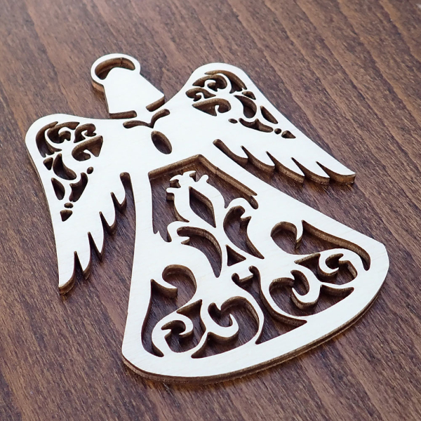 Drevená ozdoba v tvare anjelika je krásnym prírastkom na váš vianočný stromček. Vyrezaná s jemnosťou a presnosťou, zachytáva detaily anjelskej postavy, ktoré dotvárajú jej pôvabný vzhľad. Ozdoba je vyrobená z 3mm topoľovej preglejky. Vďaka svojej nadčasovej symbolike je anjelik ideálnou voľbou, ktorá prinesie do vášho domova sviatočný pokoj a kúzlo Vianoc.