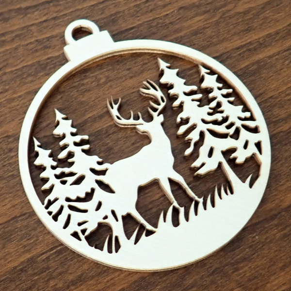 Drevená vianočná ozdoba na stromček, guľa s jeleňom 3