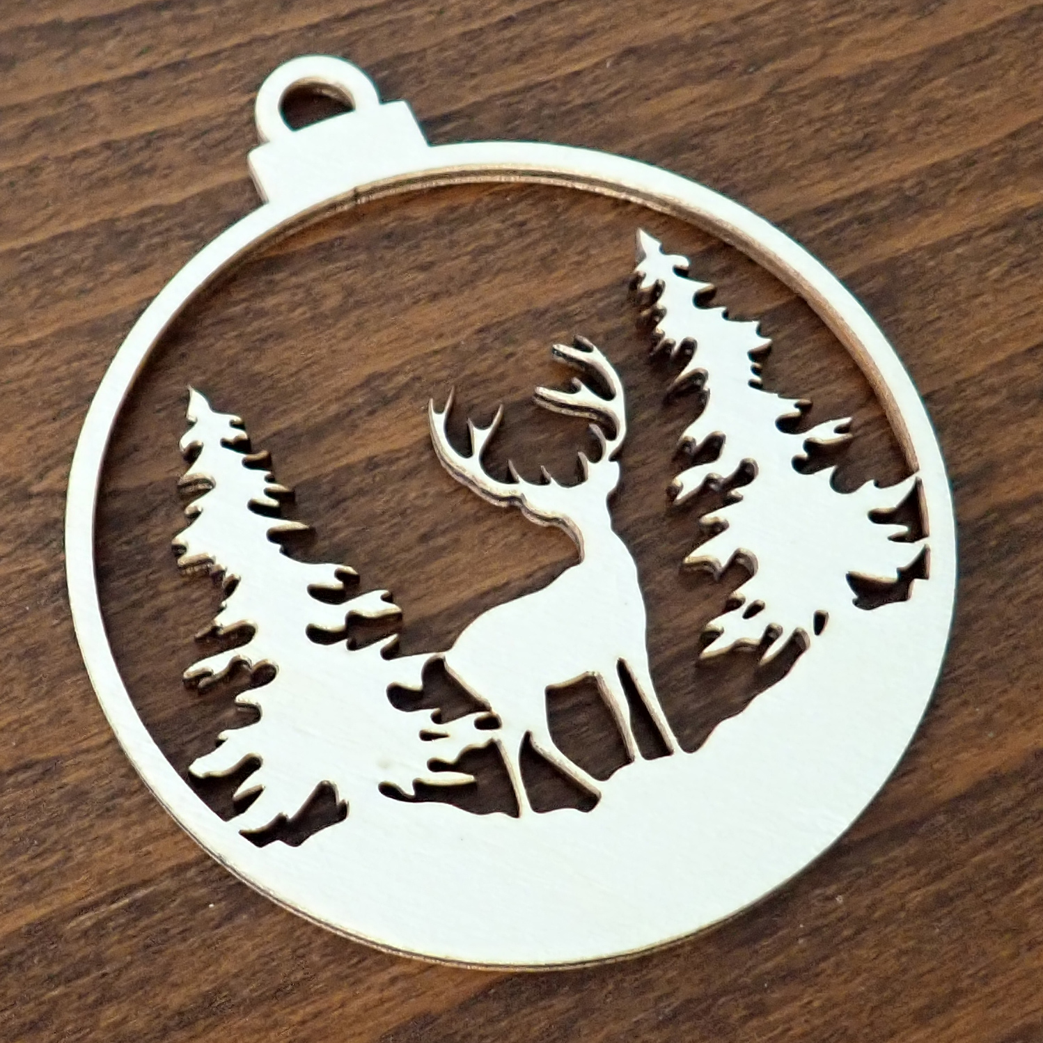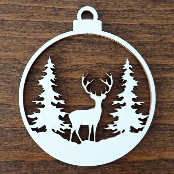 Drevená vianočná ozdoba na stromček, guľa s jeleňom 4