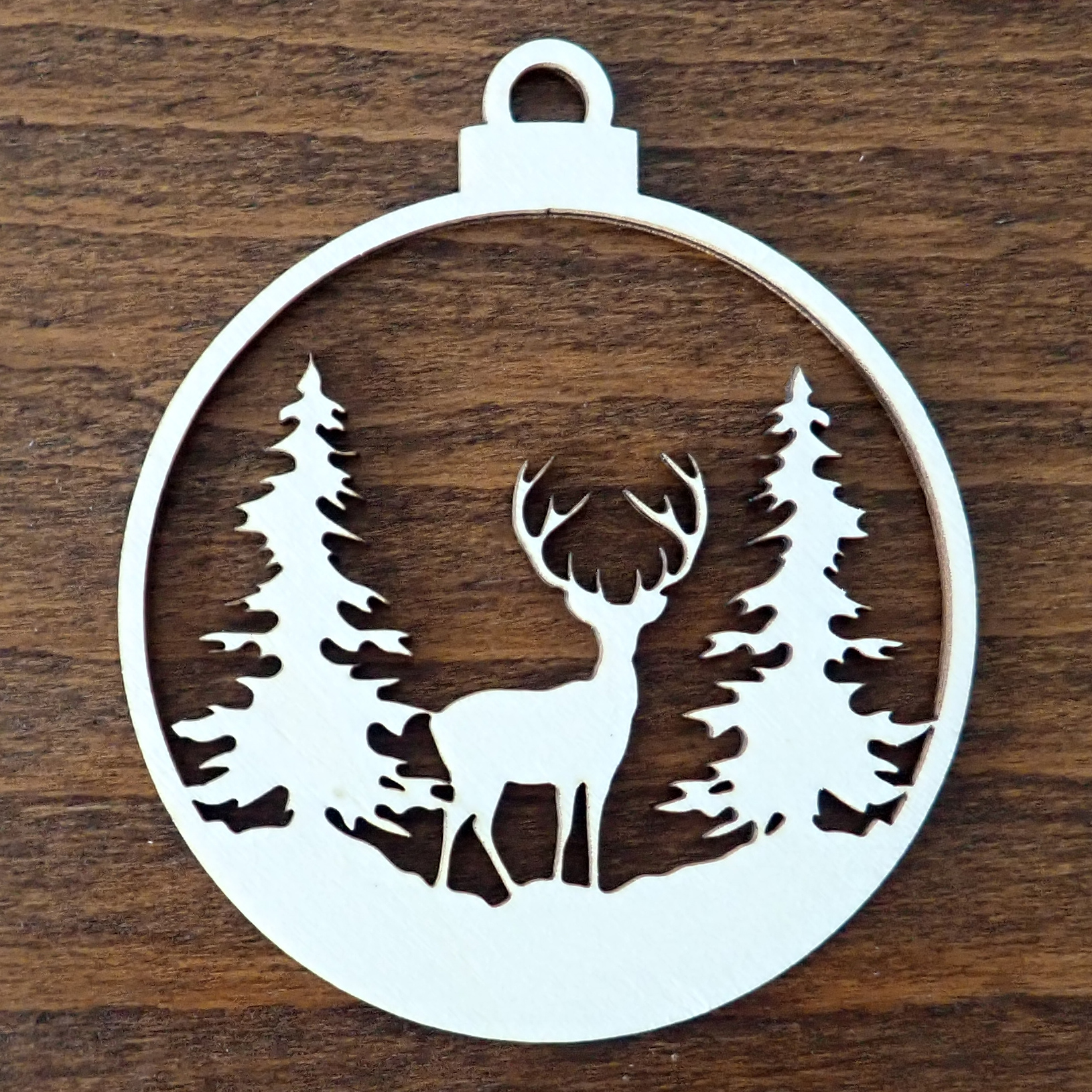 Drevená vianočná ozdoba na stromček guľa s jeleňom. Drevená dekoračná ozdoba je krásnym doplnkom každého vianočného stromčeka, je vhodná aj na dekoráciu na vence, kytice … Obľúbené drevené ozdoby zútulnia váš domov a dodajú mu harmóniu a pocit pokoja. Vianočná ozdoba je vyrezaná gravírovacím laserom. Materiál: topoľ – preglejka 3 mm, povrch: prírodný. Rozmery 80 x 93 mm. Počet 1 ks.