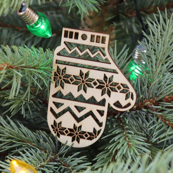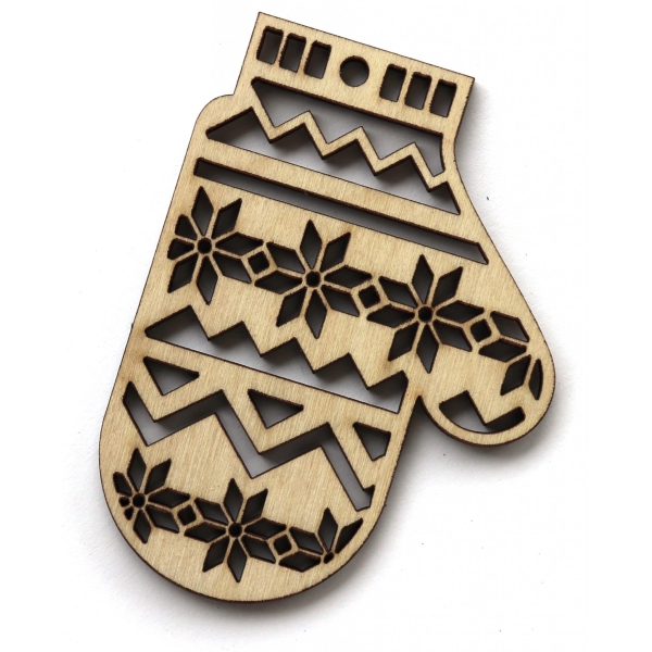 Drevená vianočná ozdoba na stromček rukavica 2. Drevená dekoračná ozdoba je krásnym doplnkom každého vianočného stromčeka,  je vhodná aj na dekoráciu na vence, kytice … Obľúbené drevené ozdoby zútulnia váš domov a dodajú mu harmóniu a pocit pokoja. Vianočná ozdoba je vyrezaná gravírovacím laserom. Materiál: breza – preglejka 3 mm, povrch: prírodný. Rozmery 58 x 80 mm. Počet 1 ks.