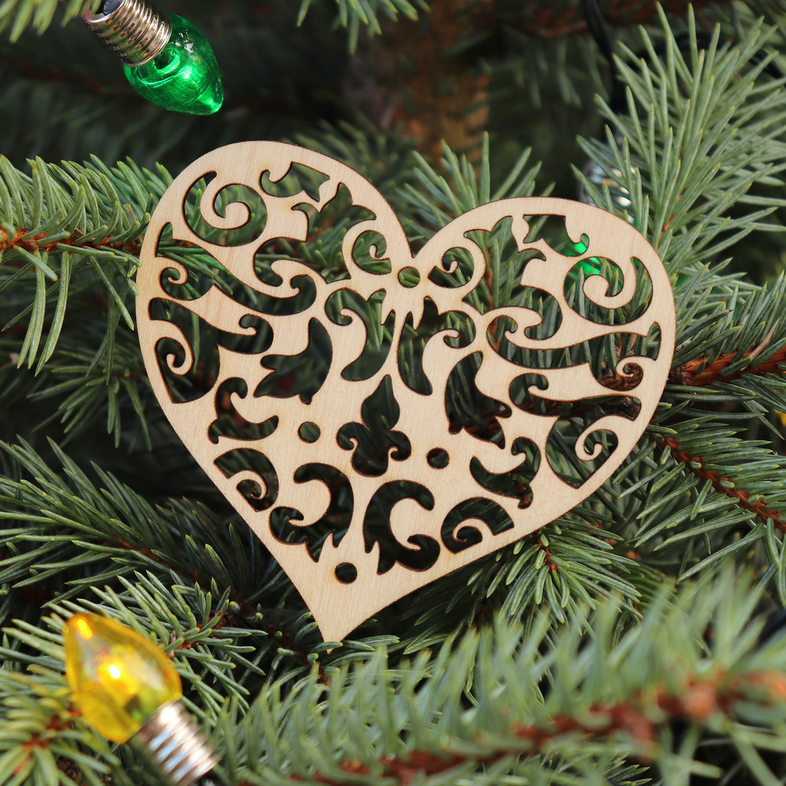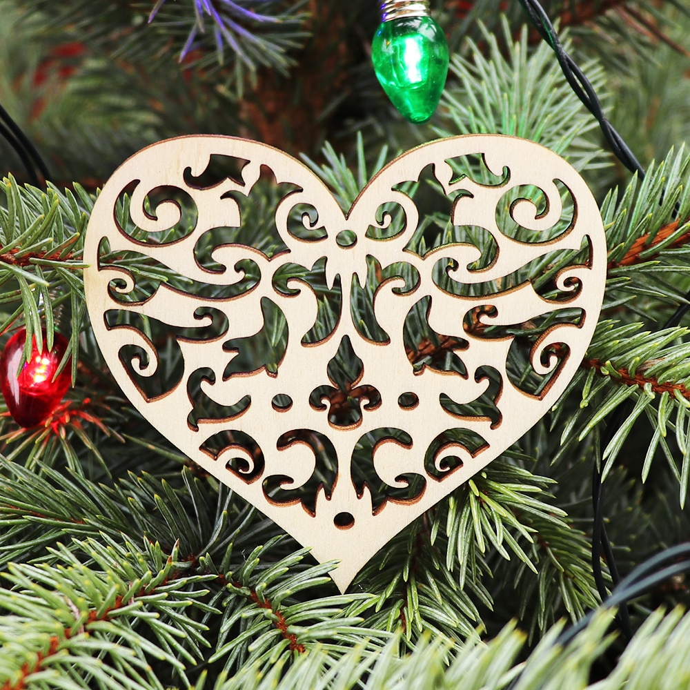 Drevená vianočná ozdoba na stromček srdce 1. Drevená dekoračná ozdoba je krásnym doplnkom každého vianočného stromčeka, je vhodná aj na dekoráciu na vence, kytice … Obľúbené drevené ozdoby zútulnia váš domov a dodajú mu harmóniu a pocit pokoja. Vianočná ozdoba je vyrezaná gravírovacím laserom. Materiál: breza – preglejka 3 mm, povrch: prírodný. Rozmery 86 x 80 mm. Počet 1 ks.