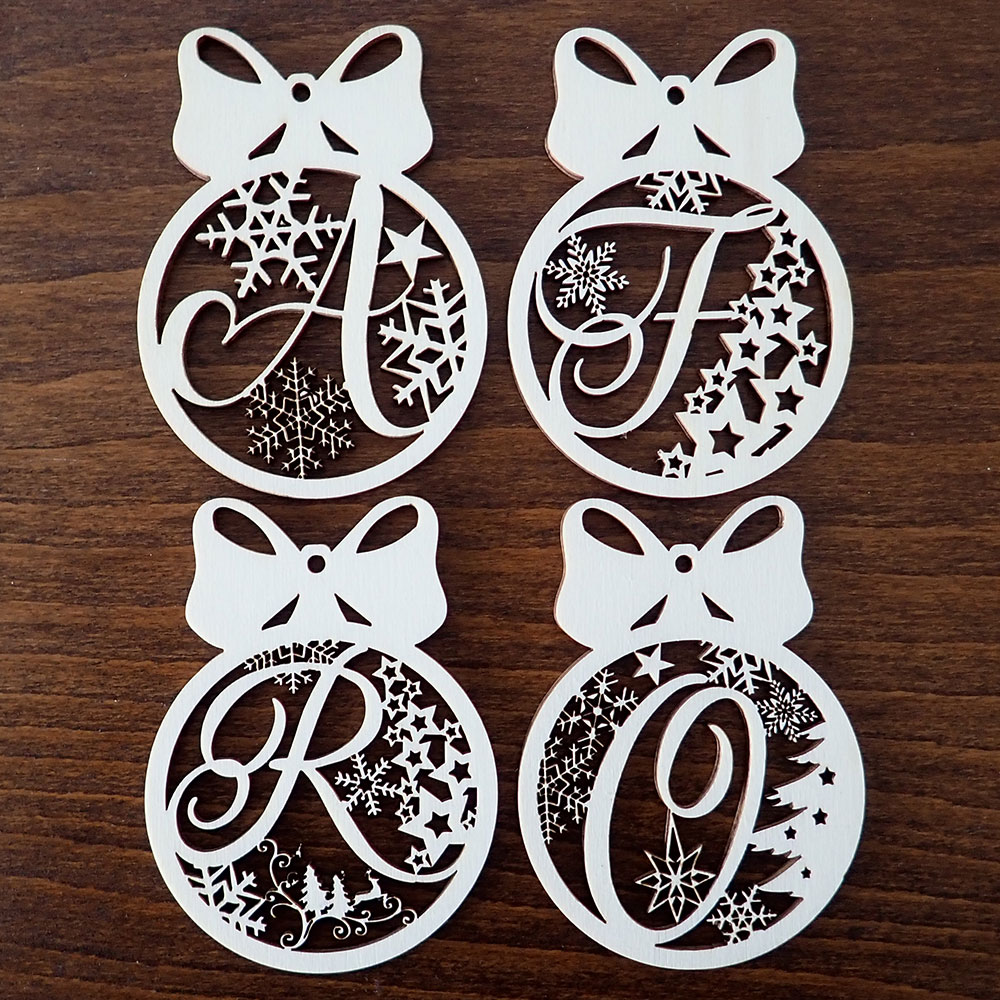Drevená vianočná ozdoba s mašľou a písmenom, vyrobená z topoľovej preglejky, je krásnym a jemným doplnkom na váš stromček. Vďaka laserovému vyrezávaniu má presné a detailné línie, ktoré z nej robia elegantný a originálny kúsok. Topoľová preglejka dodáva ozdobe ľahkosť a prirodzený vzhľad, čím vnesie do vašej výzdoby nádych prírody a tradície. Táto ozdoba bude skvelým spôsobom, ako oživiť váš stromček a vytvoriť príjemnú, sviatočnú atmosféru.