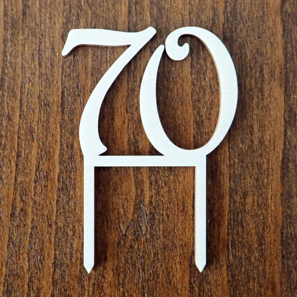 Elegantný drevený zápich na tortu s číslom 70, ktorý dodá vašej oslave štýlový a prírodný dotyk. Vyrobený z kvalitnej 3 mm preglejky, precízne vyrezávaný laserom a starostlivo brúsený pre dokonale hladký povrch bez opálenia. Celková výška zápichu je približne 9 cm, samotné číslo dosahuje výšku 5 cm. Ideálny na narodeninové oslavy či výročia, krásne doplní tortu a podčiarkne významný moment. Balenie obsahuje 1 ks zápichu.