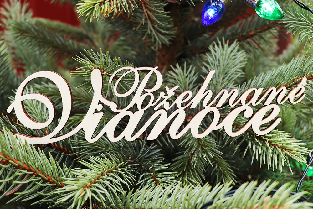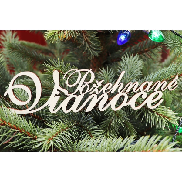 Drevený nápis Požehnané Vianoce. Nápis je vhodný na dekoráciu na vence, kytice, ikebany … Nápis je vyrezaný gravírovacím laserom. Materiál: breza, topoľ – preglejka 3 mm, povrch: prírodný. Rozmery 200 x 49 mm. Počet 1 ks.