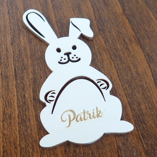 Drevený veľkonočný zajačik s vlastným menom je krásnym doplnkom na dekoráciu kytíc, vencov alebo výsluška pre šibačov. Dole nižšie je potrebné napísať zoznam mien aj s diakritikou a zvoliť požadovaný počet kusov. Veľkonočná ozdoba je vyrezaná laserom, materiál: topoľ – preglejka 3 mm, farba prírodná. Rozmery: 63 x 90 mm (ŠxV). Počet 1 ks.