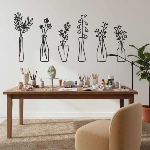Elegantná nástenná dekorácia pozostáva zo 6 samostatných dielov, ktoré spolu vytvárajú harmonický motív kvetov vo váze. Jednotlivé časti na seba vizuálne nadväzujú a spolu tvoria výrazný dizajnový prvok vhodný do moderného aj klasického interiéru.