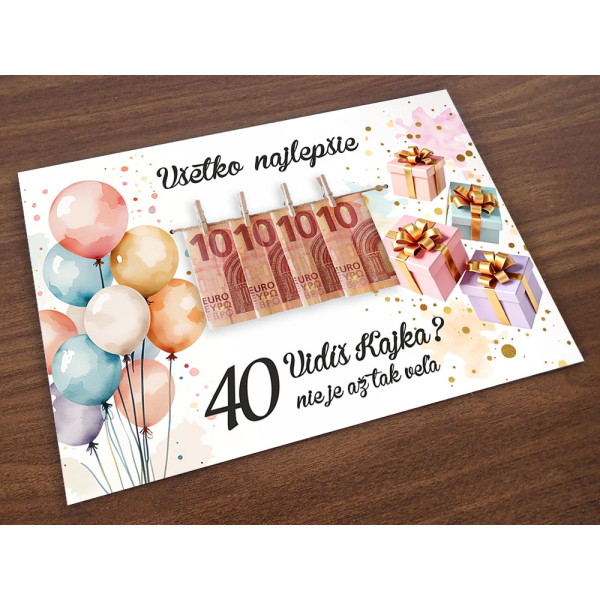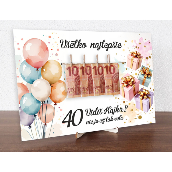 Tabuľka k narodeninám s balónmi na peniaze