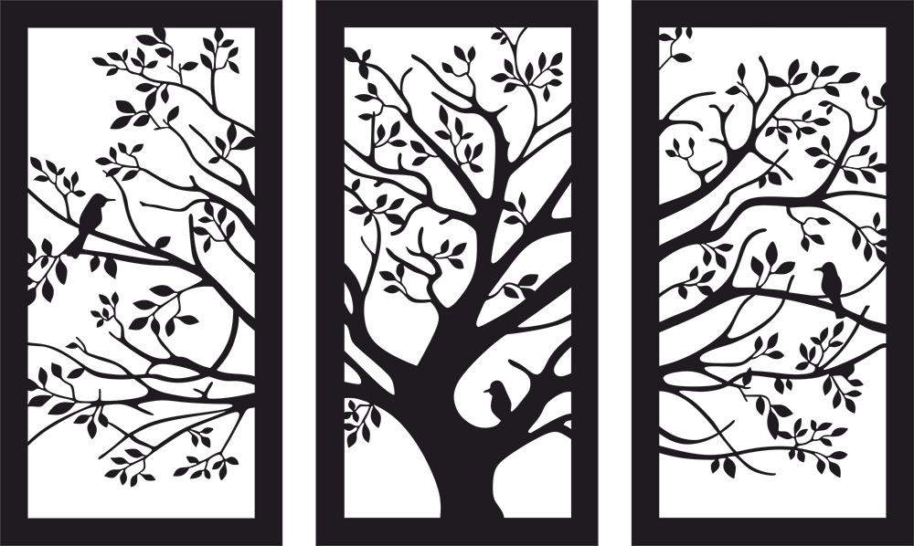 Trojdielny drevený obraz – Strom s vtákmi 2 (1 set)